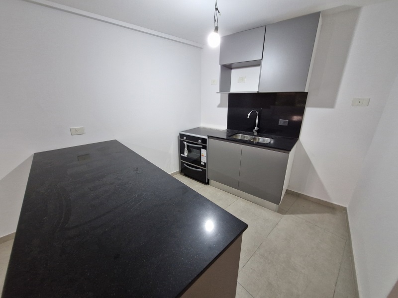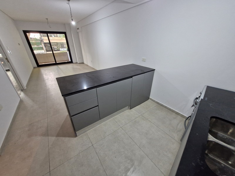 Estar-comedor con pisos en porcelanato. Cocina equipada con muebles bajo mesada y alacenas, doble mesada de granito negro, doble bacha acero inoxidable, artefacto de cocina eléctrico e instalación para conexión de lavarropas en bajo mesada.. Toilette de recepción.