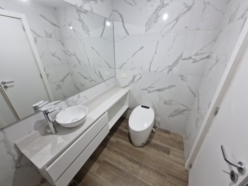 Dormitorio en suite, espacio vestidor, baño completo vanitory con mesada de cuarzo, gran espejo y sanitarios inteligente.