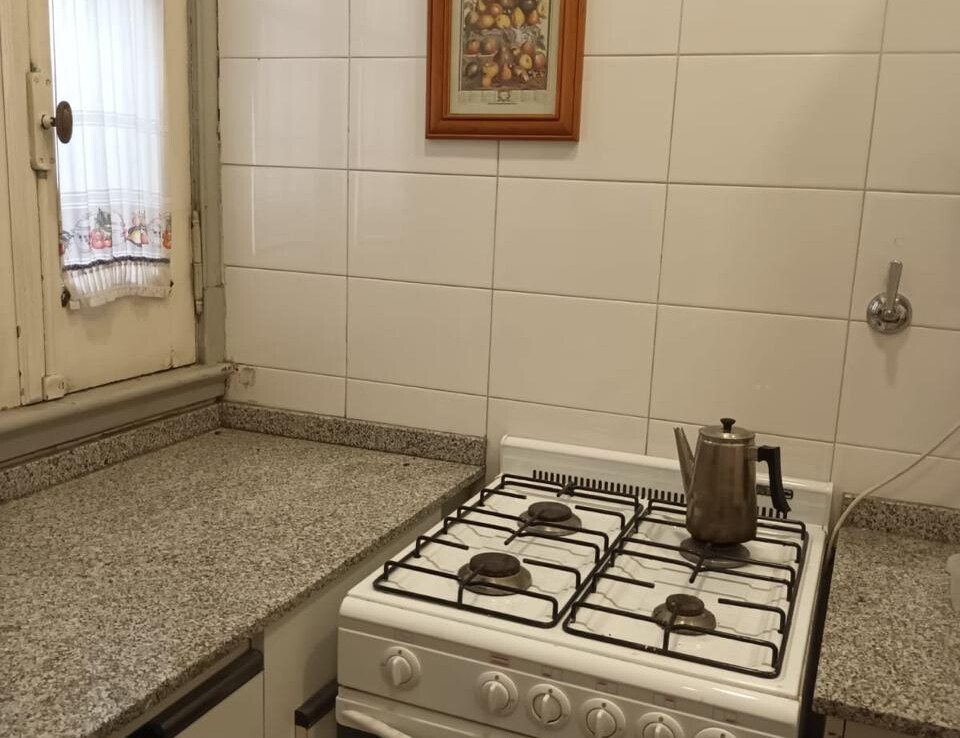 Estar-comedor de generosas medidas 7,24 x 5,27 con pisos de madera entablonado y cielorraso con luces embutidas. Cocina completa y equipada, amoblamiento bajomesada, artefacto de cocina a gas de cuatro hornallas, con horno y parrilla, mesada de granito y ventilación al exterior. Dormitorio de 4,60 x 3,67 con pisos cerámicos. Toilette de recepción. Baño completo con sanitarios, accesorios, lavatorio, bañera y espejo.