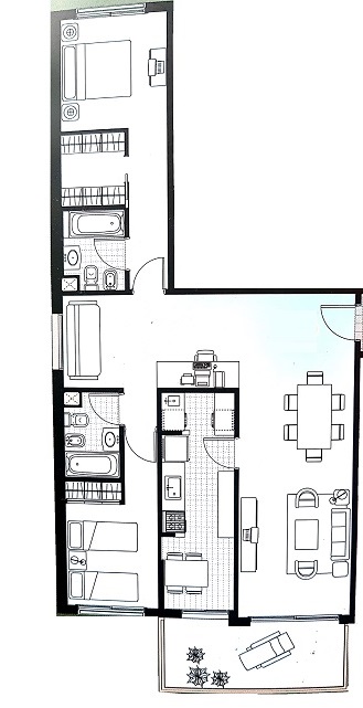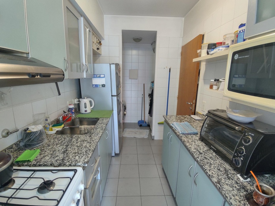 Excelente 3 AMBIENTES en edificio de categoría, 94m² de superficie, al frente y con orientación norte. Estar comedor en forma de “L” de 8,65 x 3,00 y 7,60 x 2,50 con pisos de madera entablonado y salida a balcón aterrazado de 4,50 x 2,00 y vista panorámica. Cocina independiente totalmente equipada con comedor diario de 4,85 x 2 y lavadero independiente. Mesadas de granito, amoblamiento enfrentado bajomesada y alacena completo, bacha acero inoxidable, griferia monocomando, extractor de aire y artefacto de cocina a gas de 4 hornallas con horno y parrilla. Dormitorio principal tipo master suite, doble vestidor y pisos de madera. Cuenta con baño completo, sanitarios y accesorios, vanitory, revestimientos con guarda decorativa e hidromasaje.. Segundo dormitorio con placard de interiores completos y pisos de madera. Segundo baño, sanitarios y accesorios, vanitory y bañera.