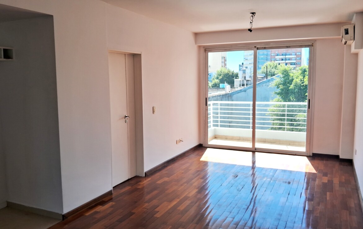 Monoambiente divisible de 36 m2 de superficie, 12 años de antigüedad, contrafrente, orientado al Este, dos balcones, muy luminoso y a pasos de Av. Gaona.